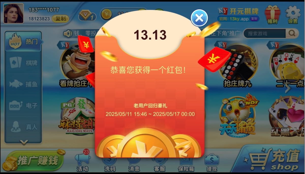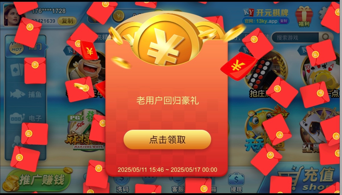 老平台了之前有账号的上号会有弹窗领取回馈彩金 金额不定 没有无视