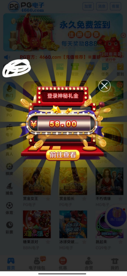 历史用户登录看看,登录就回访了58元彩金,切记勿充值勿充值。