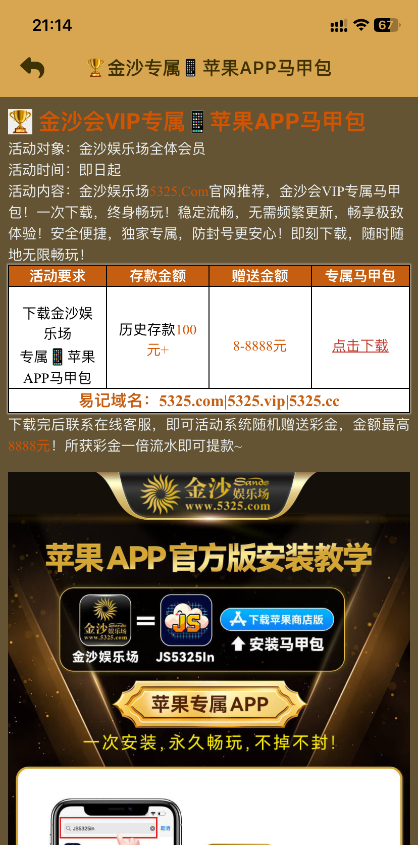 5325苹果下载马甲包彩金,有充值过的去申请吧 我充了几千领了58
