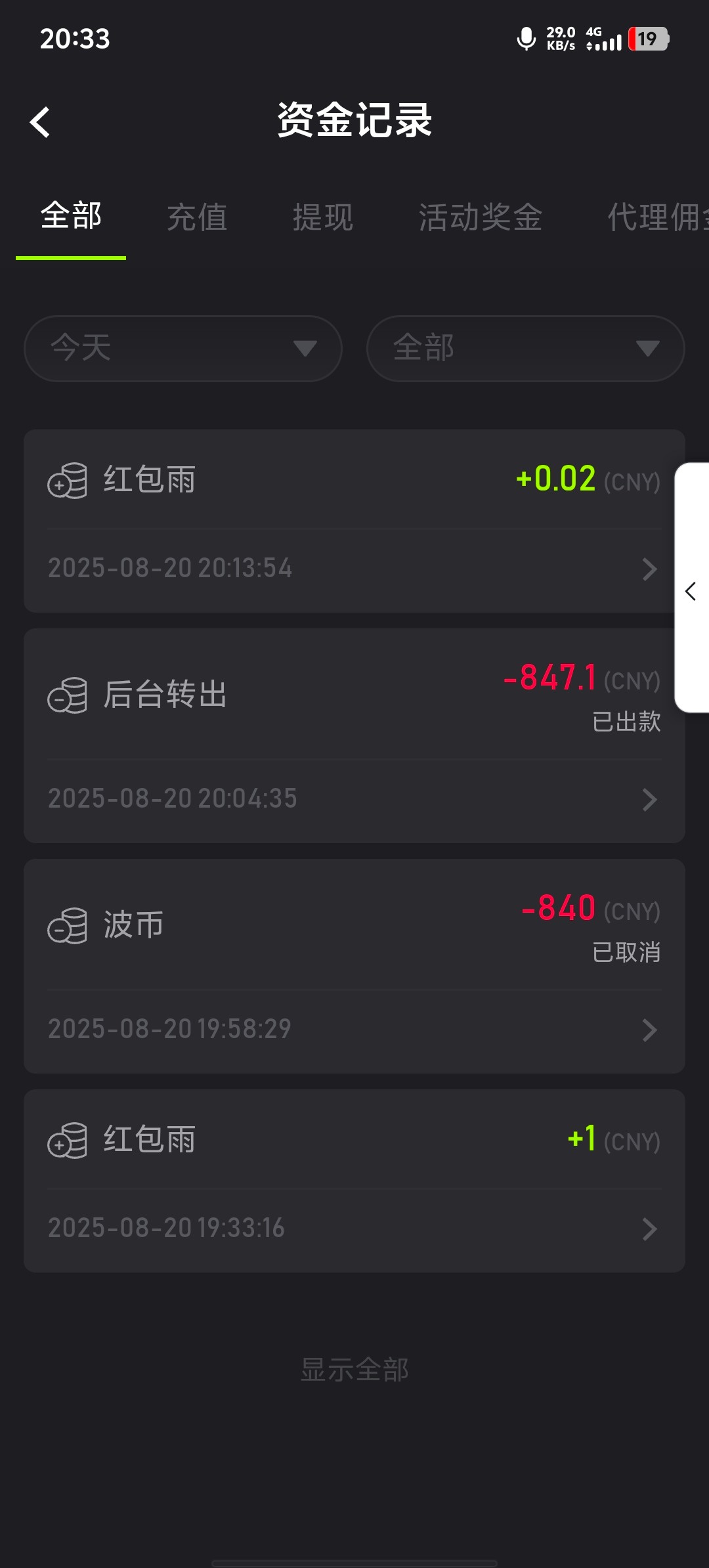 之前就是300赢了2000扣除盈利,现在他妈的红包雨一块钱打电子爆了800多又给老子黑了,你妈的黑台输不起