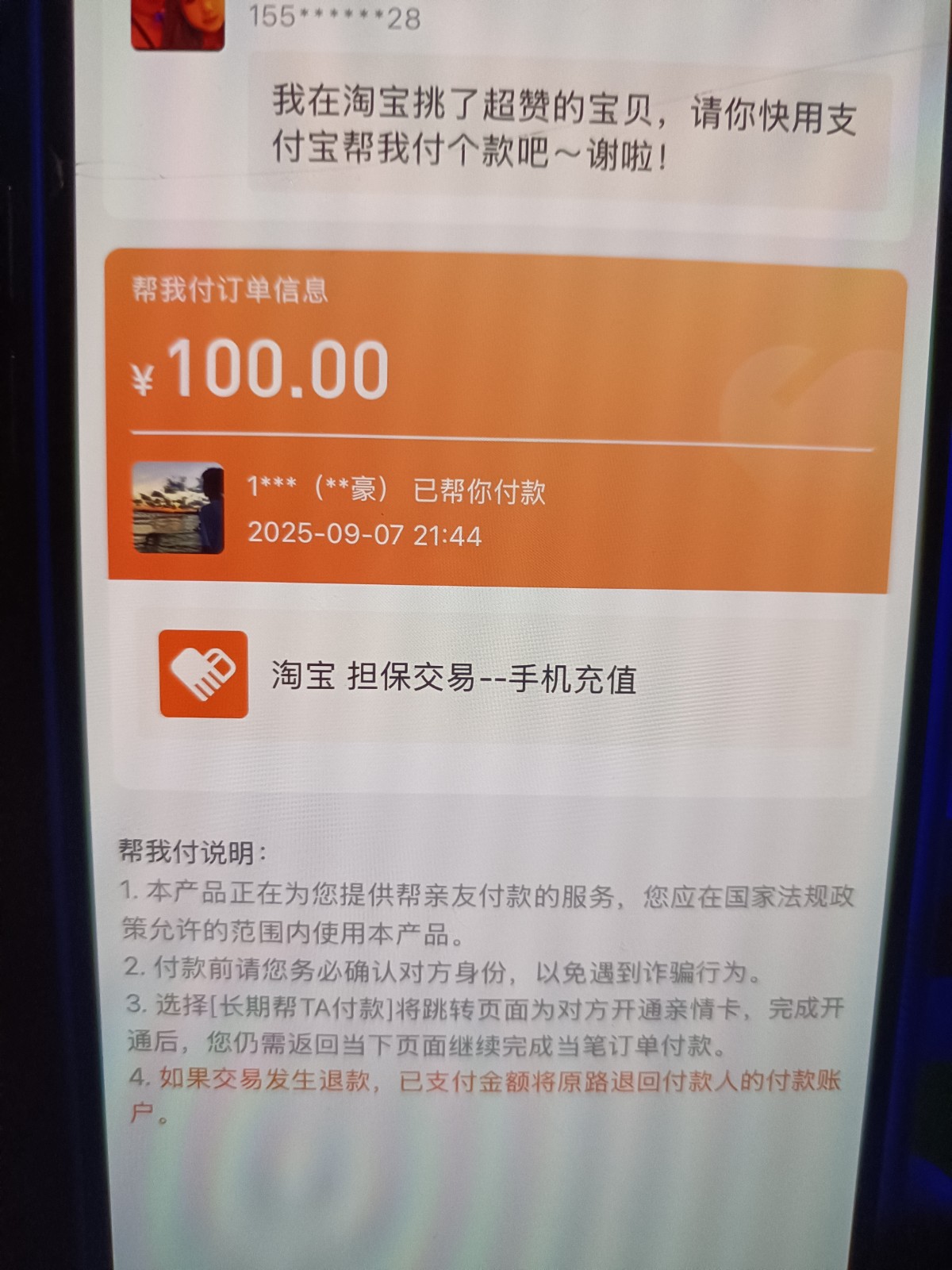 这不就是你买东西别人帮你代付了