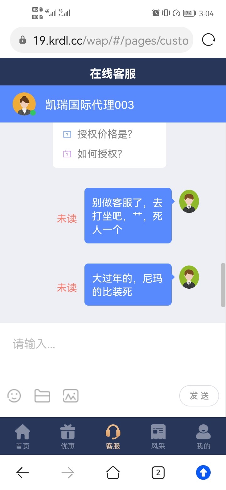 等一个小时了客服还是未读