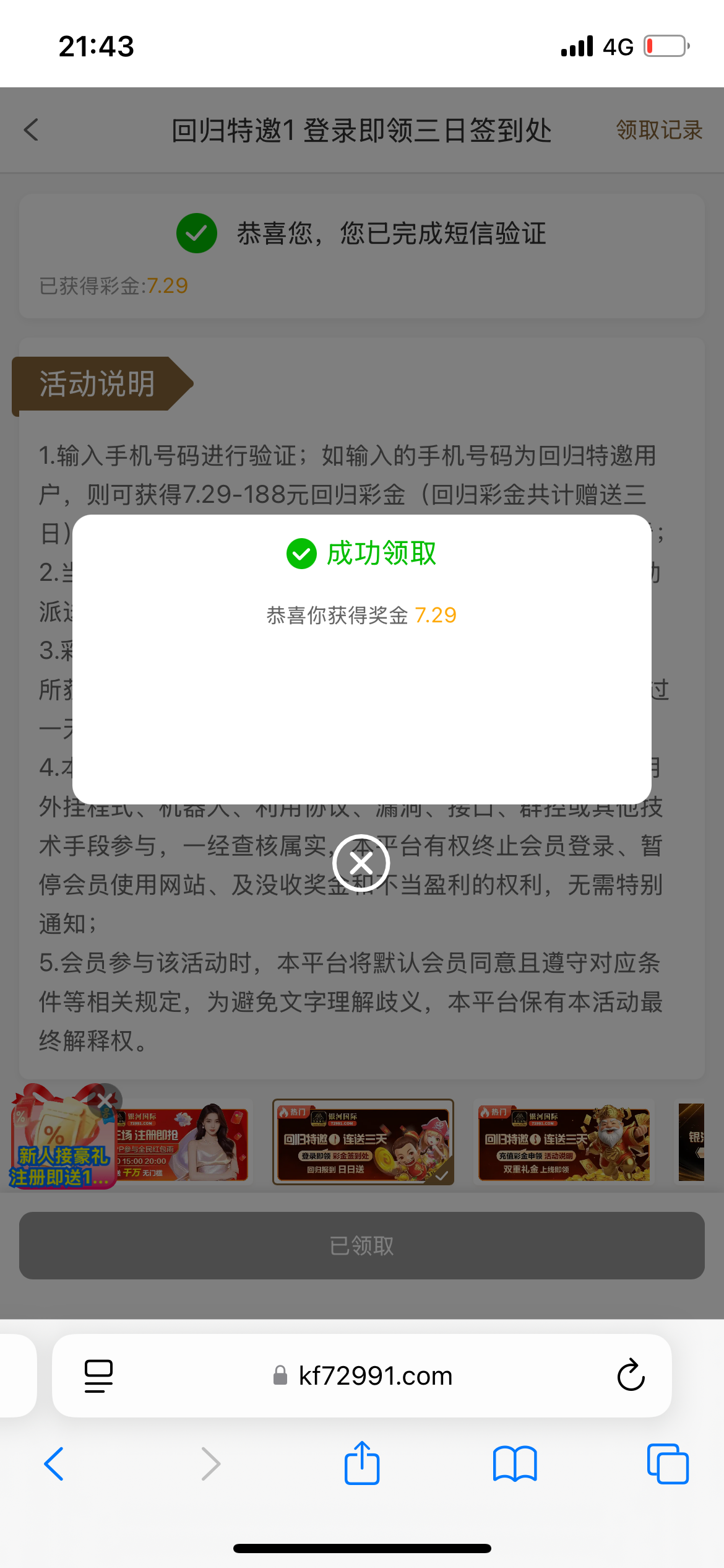 忘了说了,领到的可以连领三天