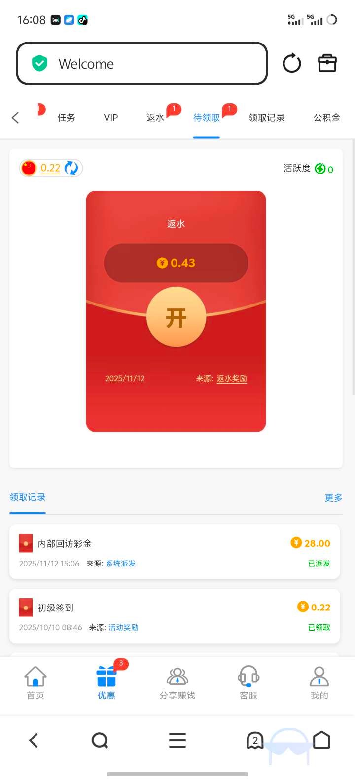 注册社区每日送10-50金币