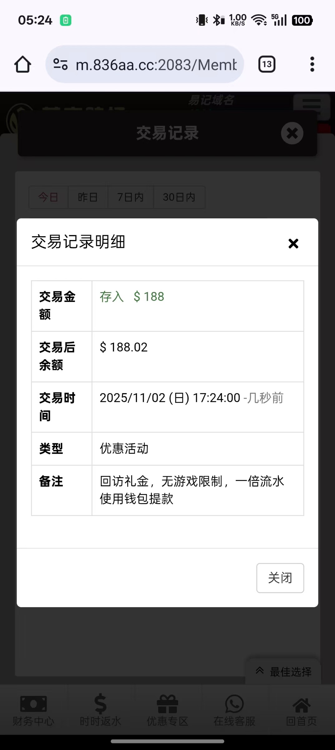 领了188,没打出来