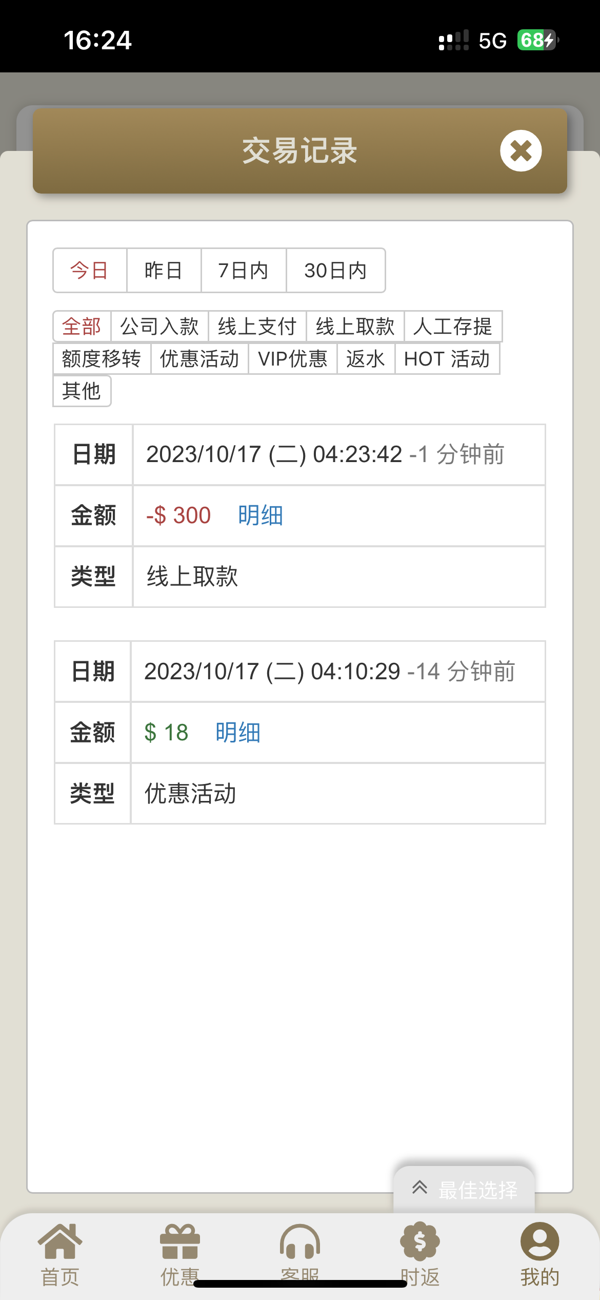 第一次彩金送了二十八 打到四百 刚刚给我来电话说反馈十八 又打到三百 白嫖七百 新号好像都赢钱 身边的都在赢 可以去试试抽水