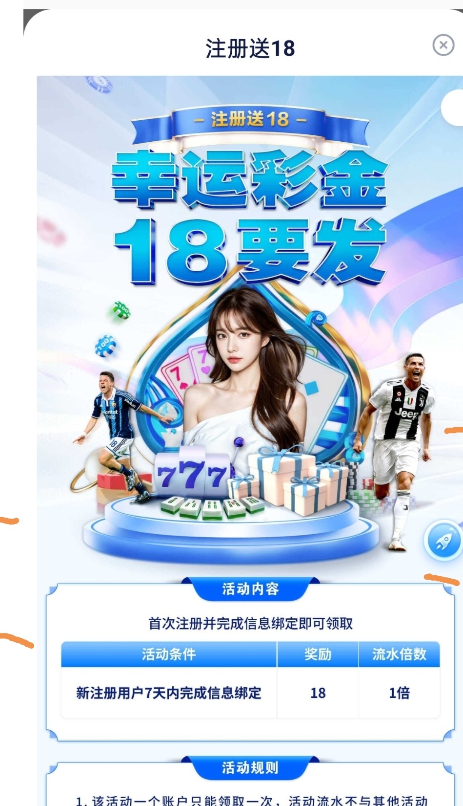新用户注册绑卡找在线客服领取18彩金,3.1才正式开服,游戏和提款限制自行查询,请勿充值