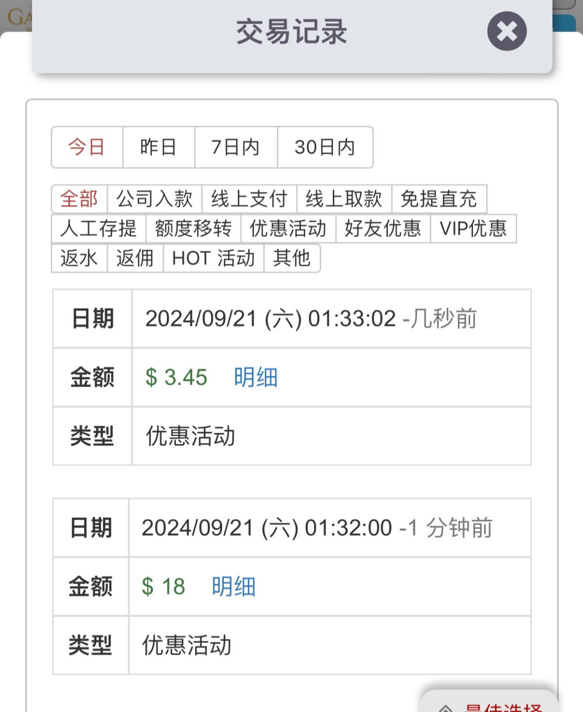 历史有账户的登录一下,有回访18元,还有签到可以领几块钱登录就领,没有账号自己先注册,绑定手机号码,有电话回访送38元,出款自测!